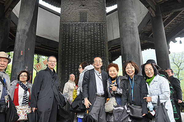 石碑の前で